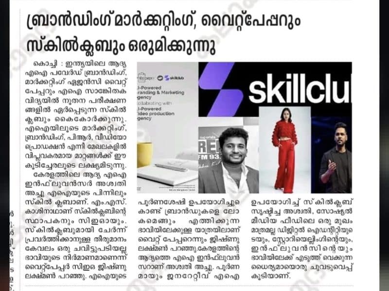 Together, White Paper and SkillClub are setting a new benchmark for the branding and marketing industry, one where AI accelerates creativity, enables hyper-personalized content, and brings brands closer to audiences across cultures and languages.